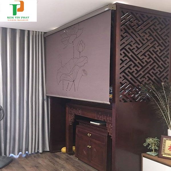 Rèm xuyên sáng họa tiết hoa sen che ban thờ 05