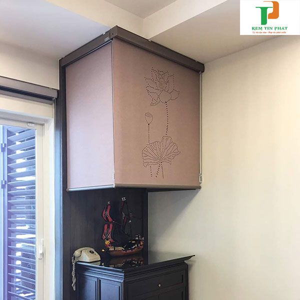 Rèm đục lỗ họa tiết hoa sen che ban thờ 07